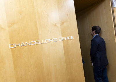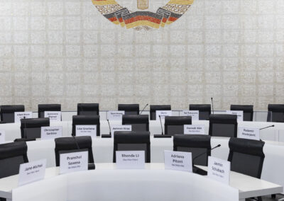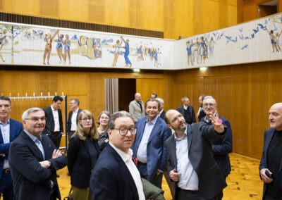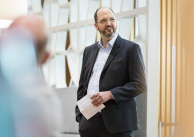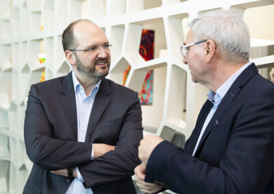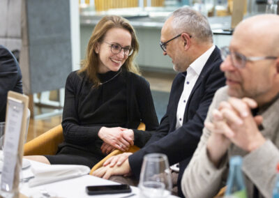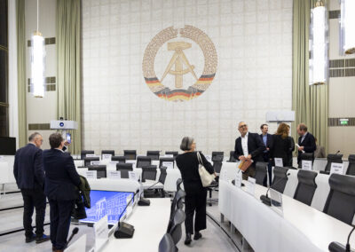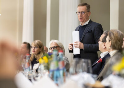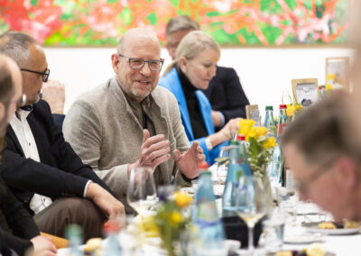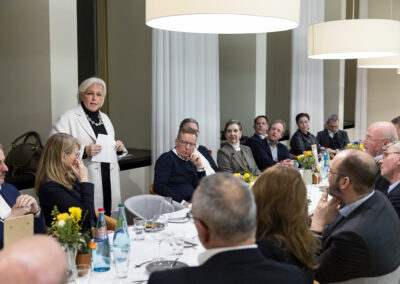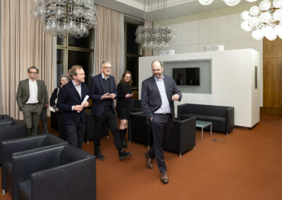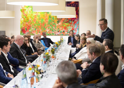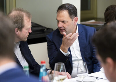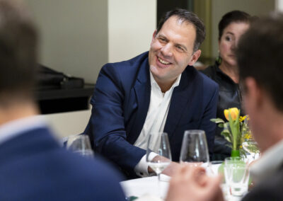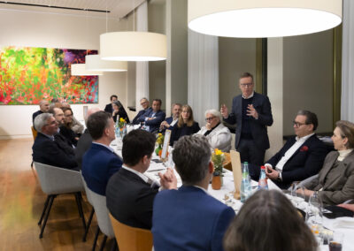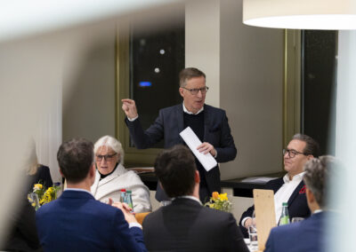 Der Dank ging ebenfalls auch an Dr. Matthias Koch, der als neuer COO & CFO der ESMT Berlin und Host dieses Abends einen Einblick in die beeindruckenden Ergebnisse der führenden Business School Deutschlands gegeben hat. Im Anschluss an das Dinner nahm Matthias Koch die Gäste mit auf eine Führung durch das Gebäude und gewährte dabei exklusive Einblicke in dessen bewegte Vergangenheit