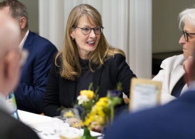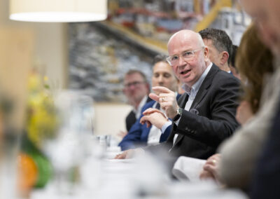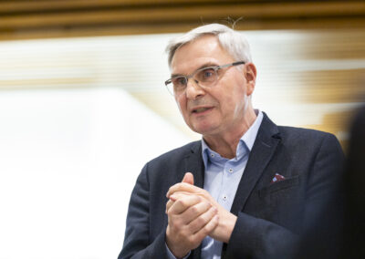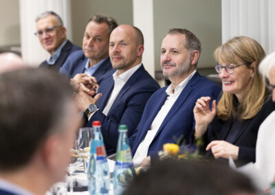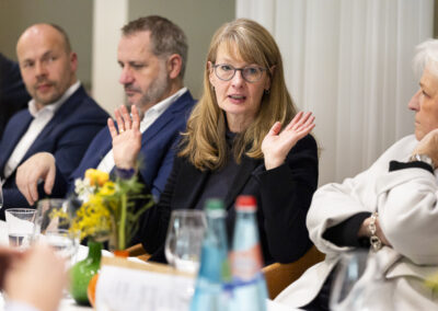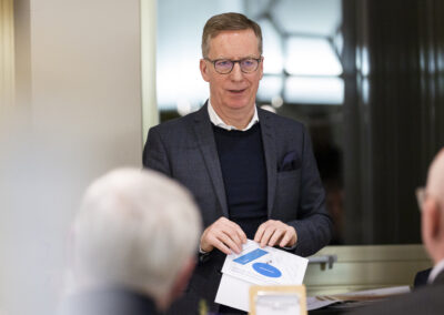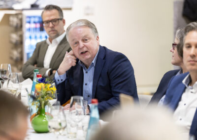Überraschend für viele war gleich zu Beginn der Ausführungen von Michael Hüther, dass die Bundesregierung offensichtlich die erforderlichen Weichenstellungen für ein notwendiges Wachstum richtig entschieden und vorgenommen hat, allerdings vor allem kommunikative Fehler dazu führen, dass bei den Unternehmen und Bürger:innen bislang eine andere Wahrnehmung entstanden ist.