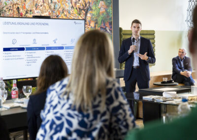 Um welche KPIs es sich dabei handeln kann, erklärte anschließend Linda Schmid. Mit gezielten Employer Branding Maßnahmen und einer Neugestaltung der Recruitingstrategie – „proaktiver wir sind der Bewerber, schau du, ob wir ein Match sind Ansatz“ – konnten die Bewerberzahlen pro Stelle gesteigert werden. Auch die Einführung von KI-Tools zeigte messbare Ergebnisse: die Zeit, die Interessierte zum Bewerben benötigen wurde um durchschnittlich 63% reduziert. Dadurch sank auch die Absprungrate im Laufe des Prozesses signifikant. Gleichzeitig wurden intern bis zu 5 Stunden Adminaufwand pro Woche eingespart.